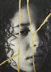 Mi obra pretende mostrar algunas de estas lacras, como son la ansiedad, la depresión, la tristeza, el miedo, la ira y la frustración. La propuesta unifica tres de las disciplinas artísticas con las que me siento más identificada: la fotografía, el collage y la pintura. El proyecto consiste en una serie retratos fotográficos que tras ser revelados han sido rotos y reconstruidos utilizando la técnica milenaria japonesa “Kintsugi”. El proceso se expresa como una metáfora que presenta personajes rotos que muestran abiertamente sus heridas con la intención de afrontar la realidad y sanar.